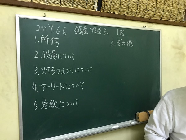 新体制の元役員会がありました。 1,上町地区の活性化 2,アーケードについて。空店舗対策 3,会員の意識向上 これらが中心で動いていきます。 そして倉庫としてしか使っていない福引所をお休み処や情報発信の場としての活用の場とする。 などなどの話し合いがありました。 これからは今までの無駄を見直す事と人口減少、高齢化、商店減少など世の中の流れに対応しつつ、人の心に火を灯すような活動をし地域を巻き込んで行きたいと新ウェブマスター横岩は感じております。