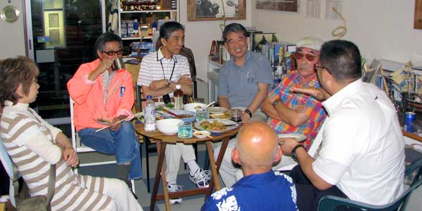 不肖、次席ウェブマスターの店、オーシャンノートでプチ宴会を開催しました。 オーシャンノートもお陰さまで来月で開業3年を迎えます。横須賀の住人歴20年ながら、地の人間ではない私がお引き回しいただきこうして次席ウェブマスターを仰せつかっていたり、折角お客さんやご近所のご助力のお陰で何とか今日までやってくることができた訳で、何かと希薄なバーチャルワールドだけでは寂しいと思い、人の輪を広げ賑やかな上町のムード作りの一助にでもなればと考えて企画しました。 開催に当たっては3軒隣の高城食品さんに多大なるご協力をいただきおつまみを揃えていただき、商店会長の今関さん、小児科の内海先生、床屋のアベカワさん、その他、当店のお客様は横須賀学の面々から牧師さんなど、皆で飲み物食べ物を持ち寄り、多士済々の楽しい集まりになりました。 翌日は次席ウェブマスター、すっかりマグロ状態でしたが、毎月第三金曜の開催を考えており、第2回の来月は灯ろう夜市と重なります。世情が宜しいとはいえぬ中、楽しむことは良い事と改めて思った次第です。